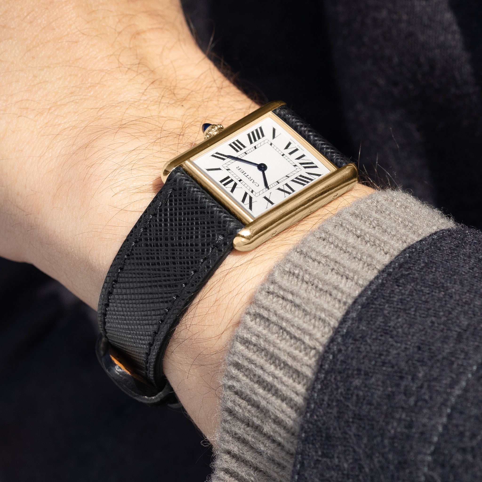 Horlogeband voor Cartier Tank Louis (2021-2024) - The Saffiano Black