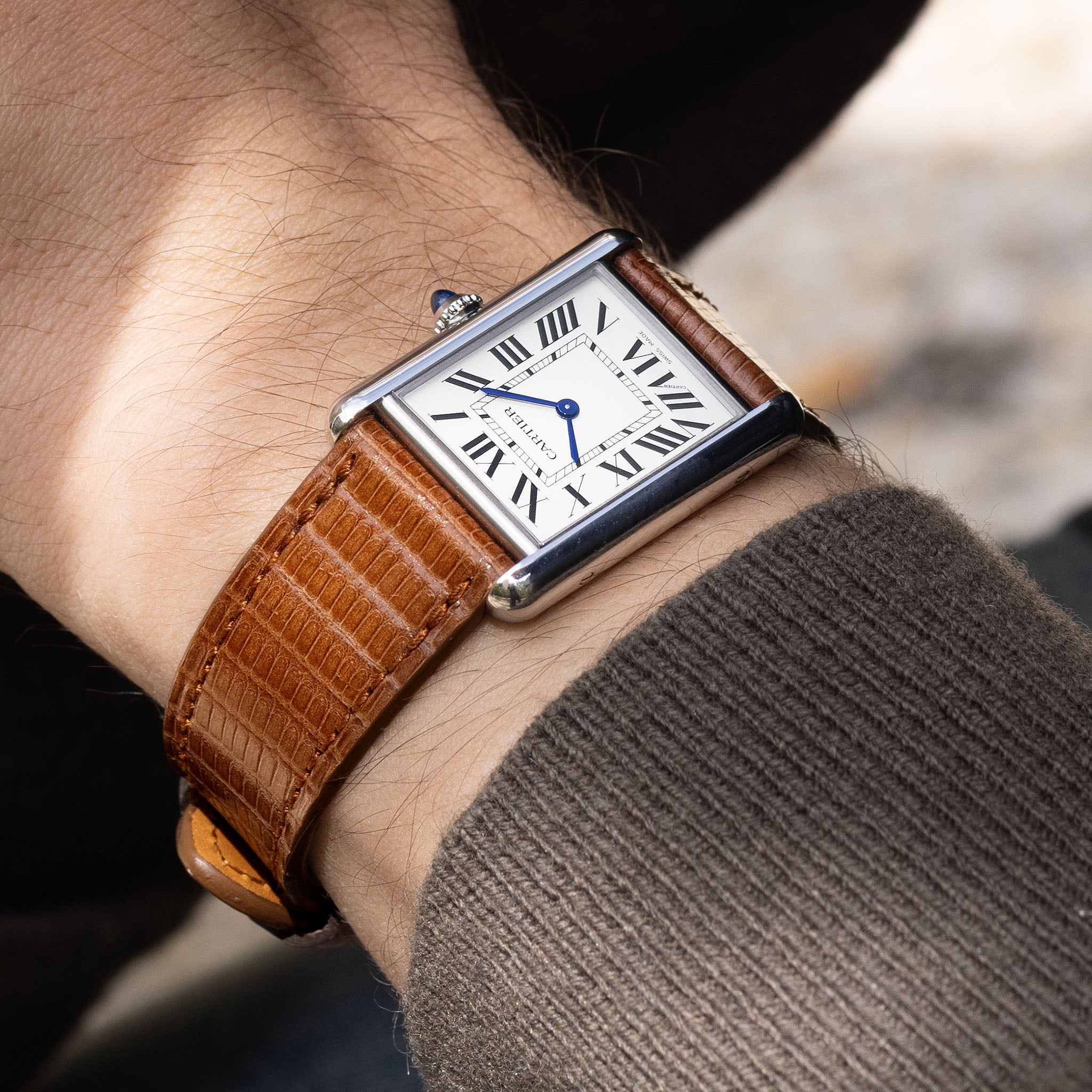 Horlogeband voor Cartier Tank Must (2021-2024) - The Cognac Brown Lizard