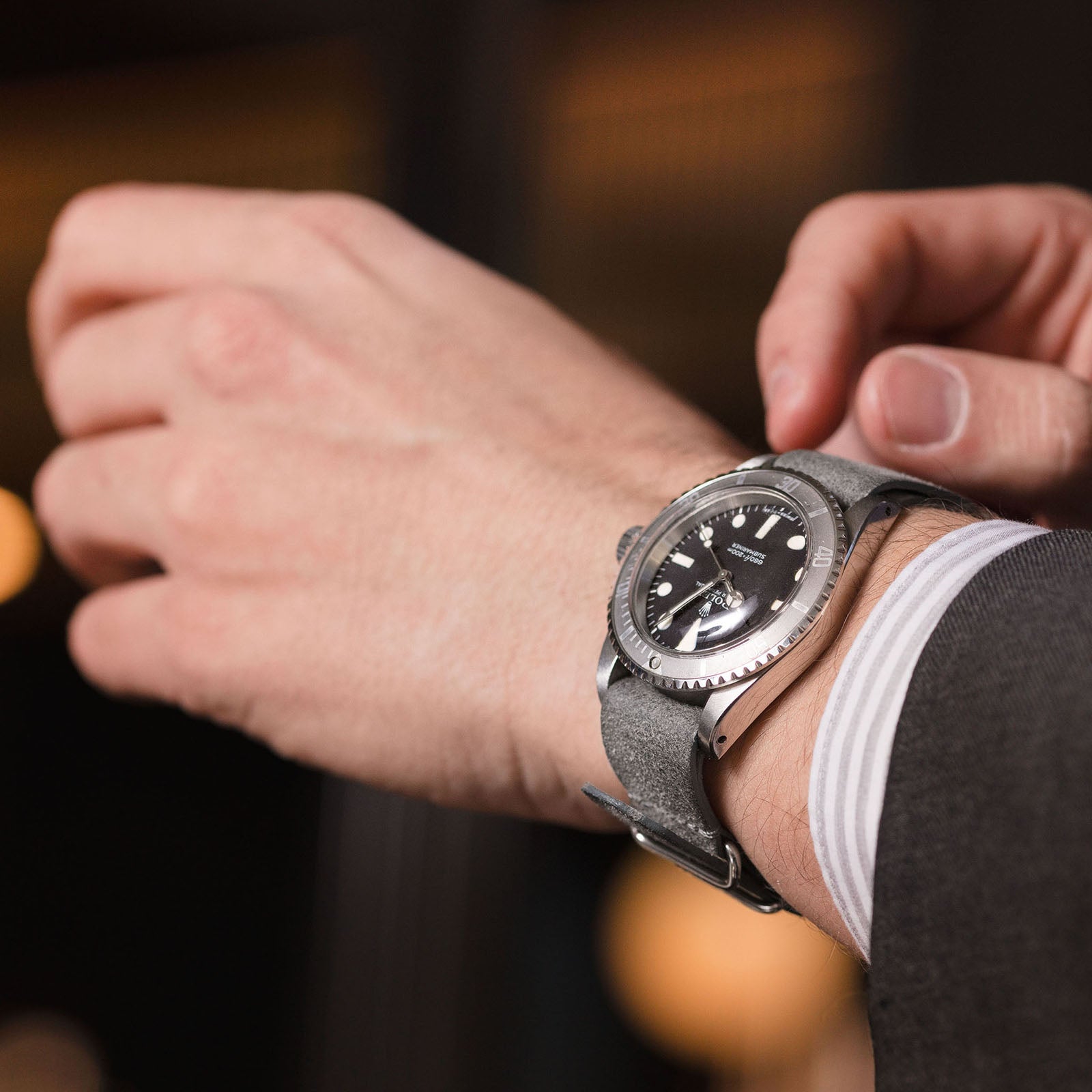 The Mayfair Grey Nato Leather Watch Strap - Jubilee Edition